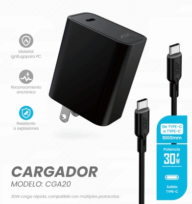 30W Type-C Fast Charger with Type-C to Type-C Cable
