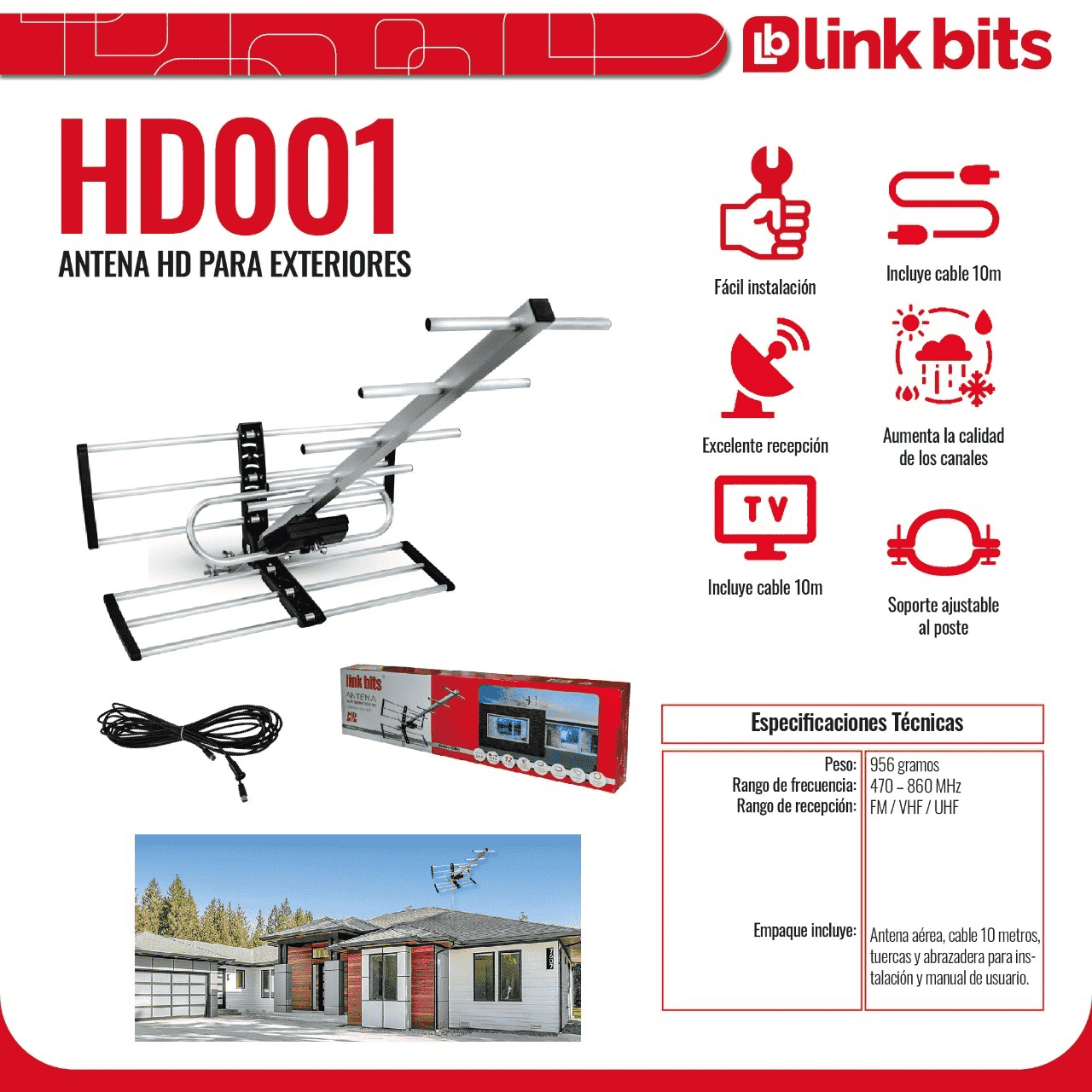 ideal para disfrutar de la TV digital terrestre con la mejor calidad de imagen y sonido. Con una longitud de cable de 10 metros, podrás ubicarla en el exterior para una recepción óptima de señales UHF VHF FM. Su diseño de plástico y aluminio garantiza durabilidad y resistencia a la intemperie.