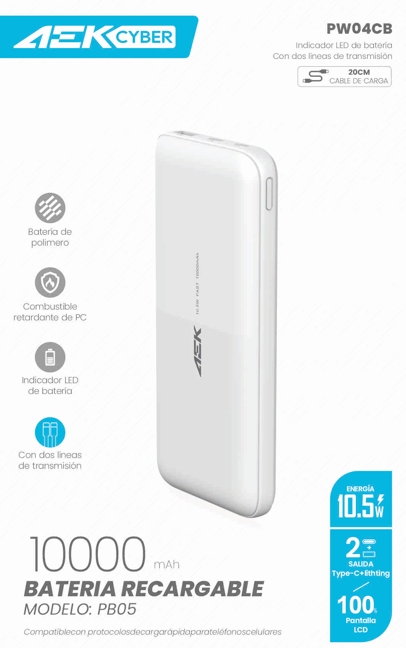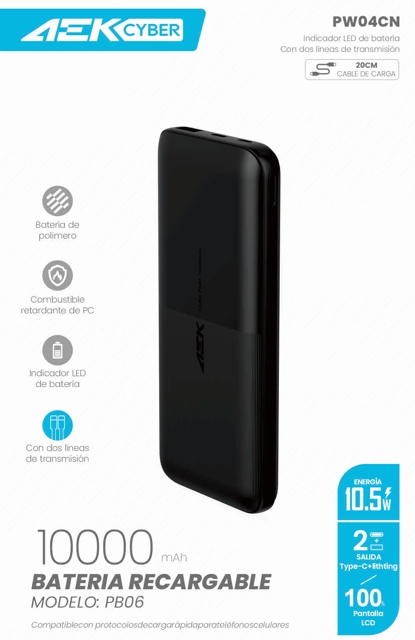 Serie PW04 10,000mAh Power Bank with Charging Cable Type-C, Lightning