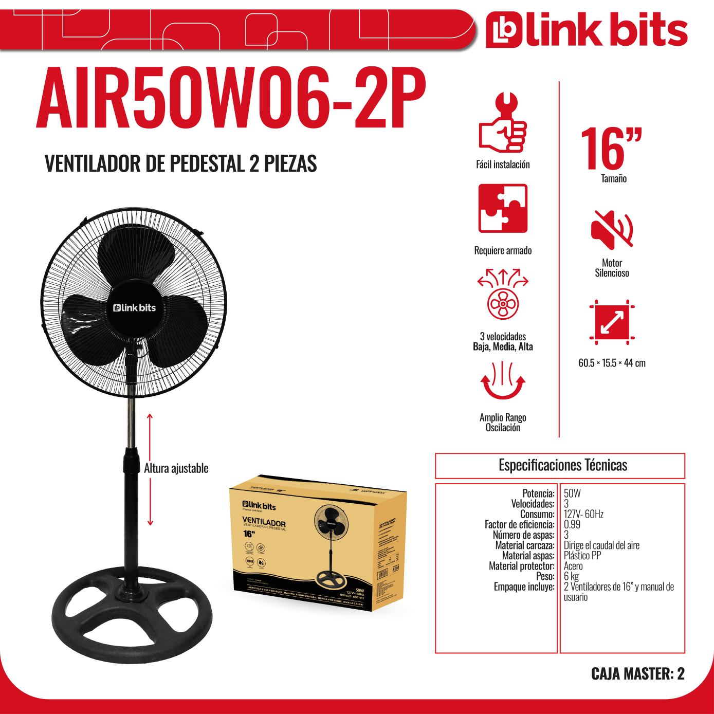 Ventilador de 18″ Pedestal con Aspas Aerodinámicas 3 Velocidades Metálico.El ventilador cuenta con un motor de 50W,cada caja contiene 2 ventiladores, el producto es unitario