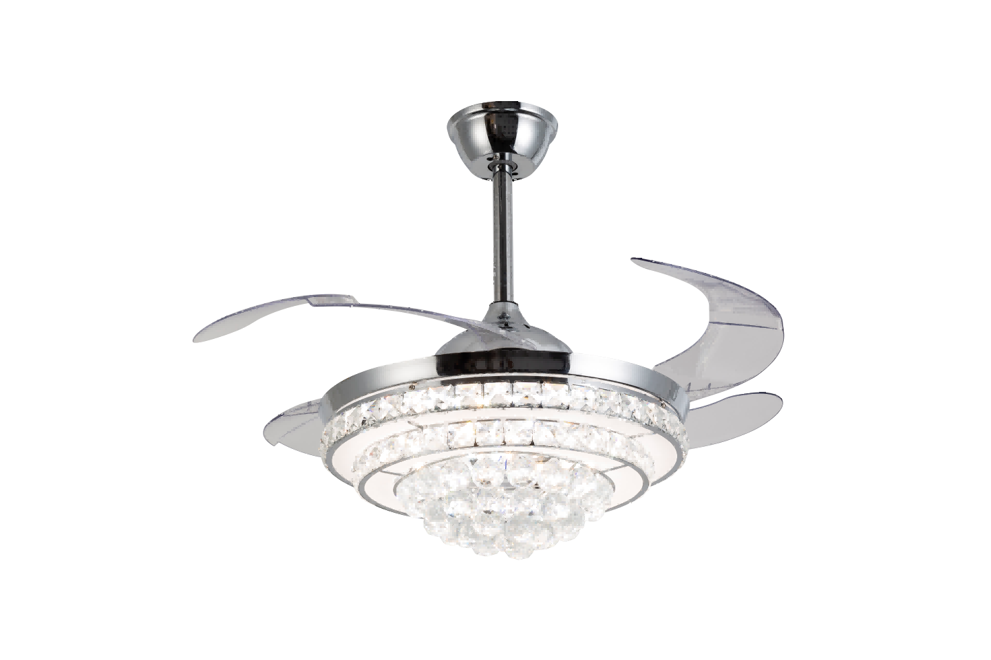Lámpara de ventilador invisible de cristal de 42 pulgadas para dormitorio Ø500mm, 6 velocidades, color plata