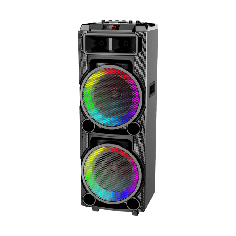 Altavoz portátil inalámbrico para fiestas con dos subwoofers de 10 pulgadas.