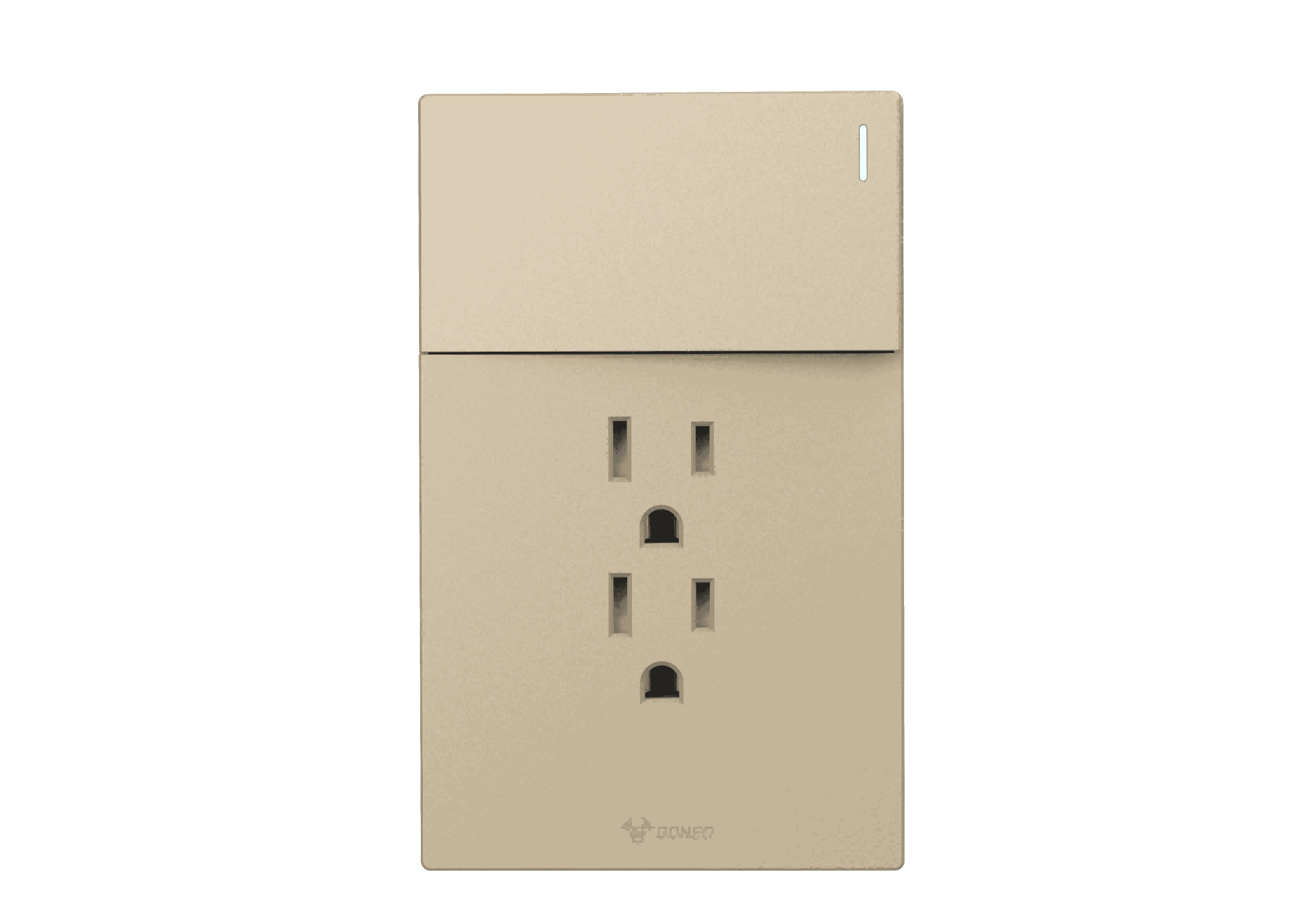 Enchufe estándar de tres polos + interruptor simple de tres polos con control único y luz fluorescente (MX) 15A