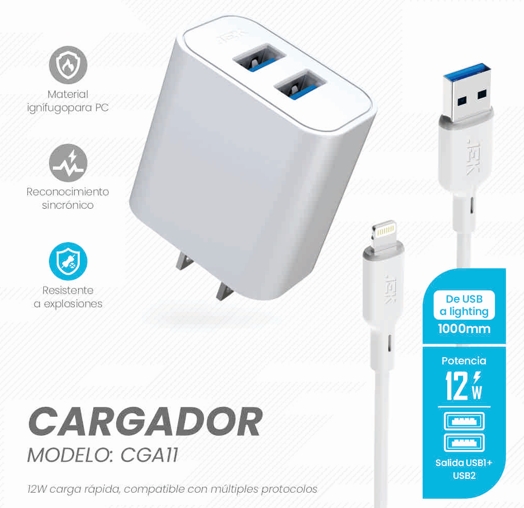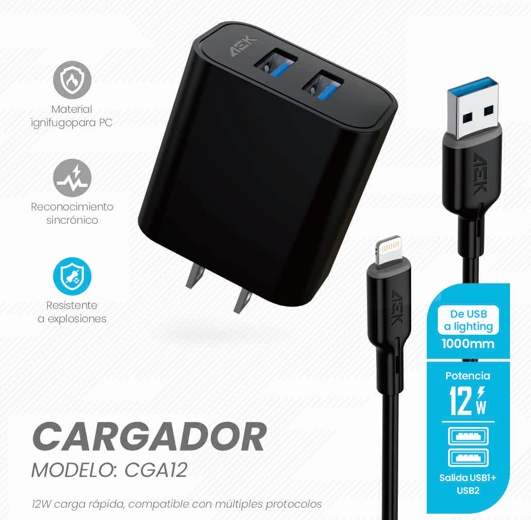 12W USB-A to Lightning charger designed for iPhones. Features optimized charging algorithm and durable connector for Apple devices.
