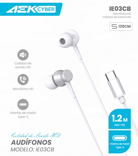 Serie IE03 Audífonos Alámbricos Manos Libres In Ear con Micrófono para Tiop-c