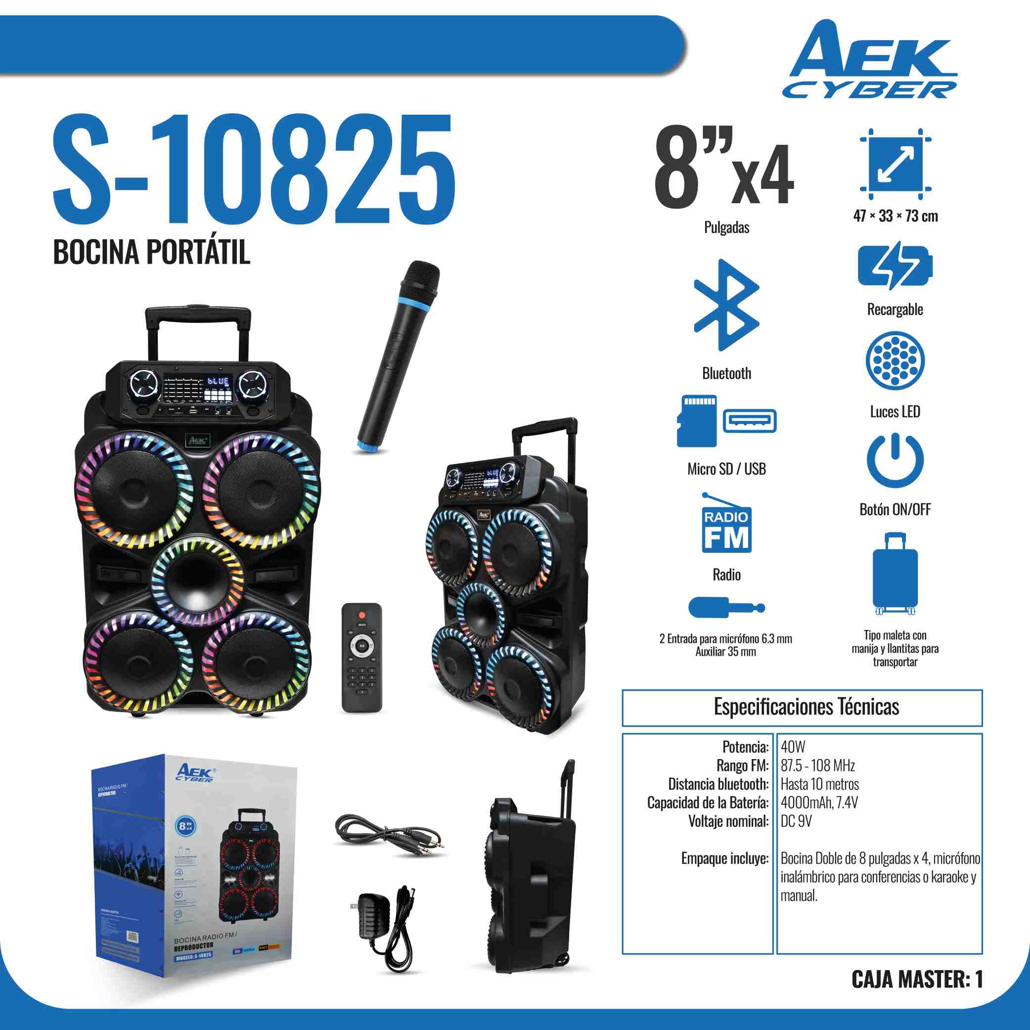 Altavoz Bluetooth portátil, 4 altavoces de 8 pulgadas, sistema de subwoofer de alta potencia, batería recargable integrada, múltiples modos de luz, compatible con funciones USB/TF/FM/AUX/TWS/MIC, etc., ideal para fiestas al aire libre y aplicaciones de audio profesional.