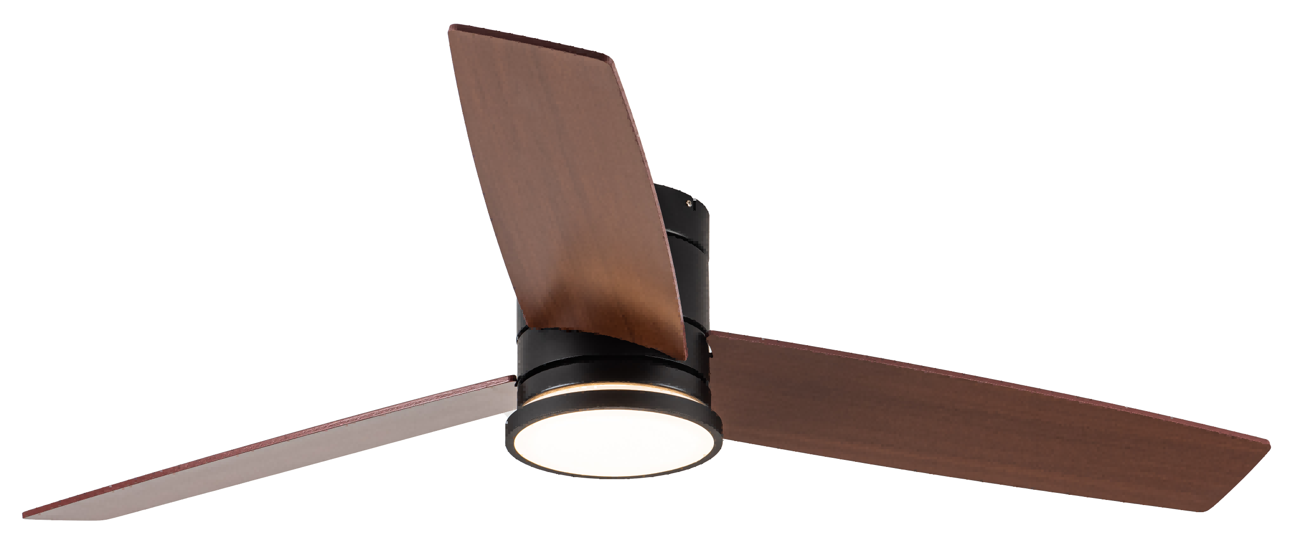 Abanico de techo para salón de 52 pulgadas con textura de madera negra, 3 aspas de MDF, temperatura de color regulable, brillo regulable, velocidad de rotación 171 RPM, motor de CC de 30 W